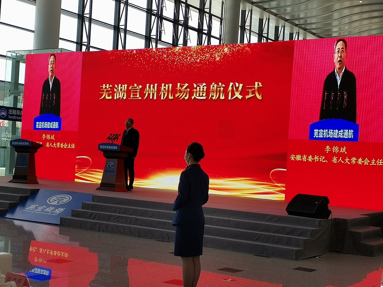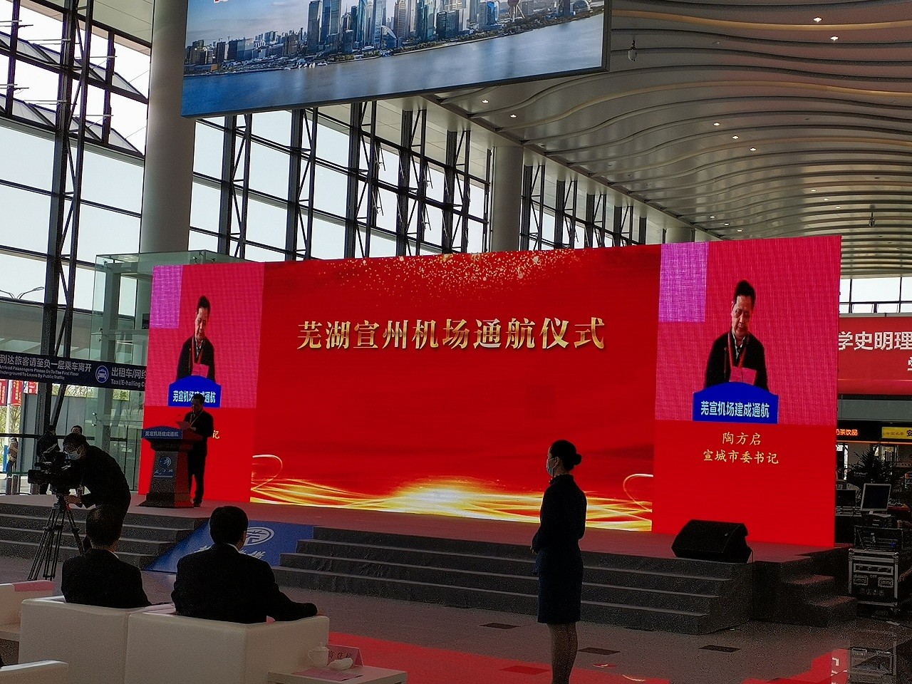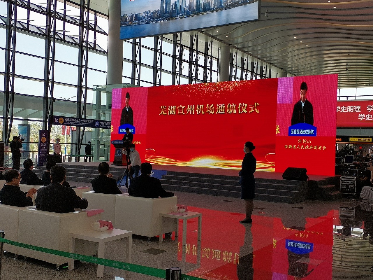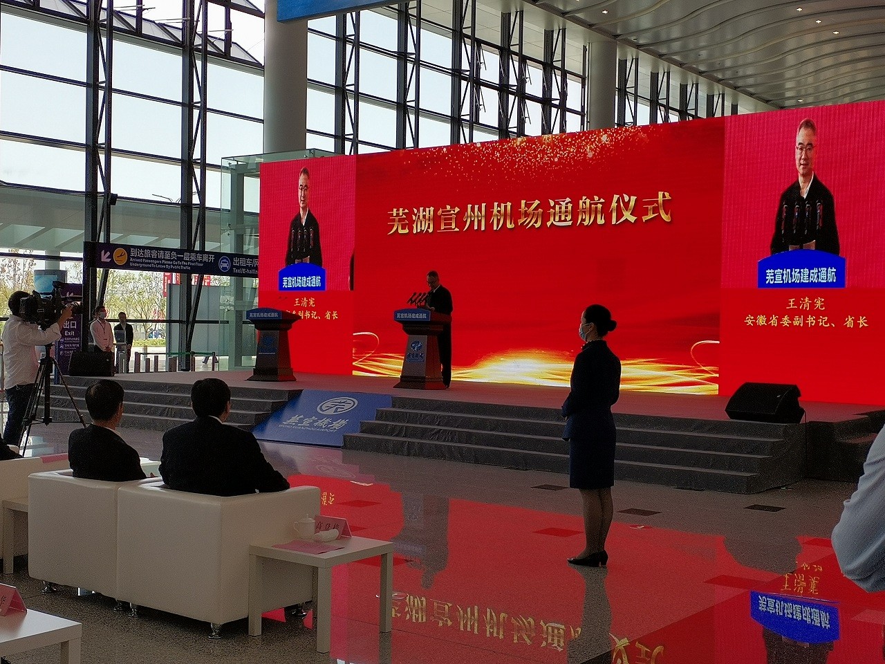 今天上午,蕪宣機場正式通航,通航儀式開始前,市委書記陶方啟、市委副書記、市委秘書長吳愛國、市政府秘書長盛浩等宣城市領導蒞臨宣城城建集團冠名的2號貴賓廳參觀和休息,參觀休息后,共同出席通航儀式,儀式上,省委副書記、省長王清憲發(fā)表講話,省委書記、省人大常委會主任李錦斌宣布蕪宣機場正式通航。