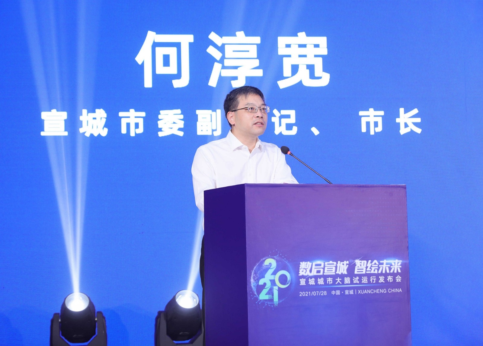 7月28日上午,宣城城市大腦試運(yùn)行發(fā)布會在敬亭湖賓館隆重舉行,發(fā)布會上宣城市委常委、常務(wù)副市長于靜波和科大訊飛股份有限公司高級副總裁張友國共同為宣城城訊信息科技有限公司(城建集團(tuán)與科大訊飛合資公司)揭牌。