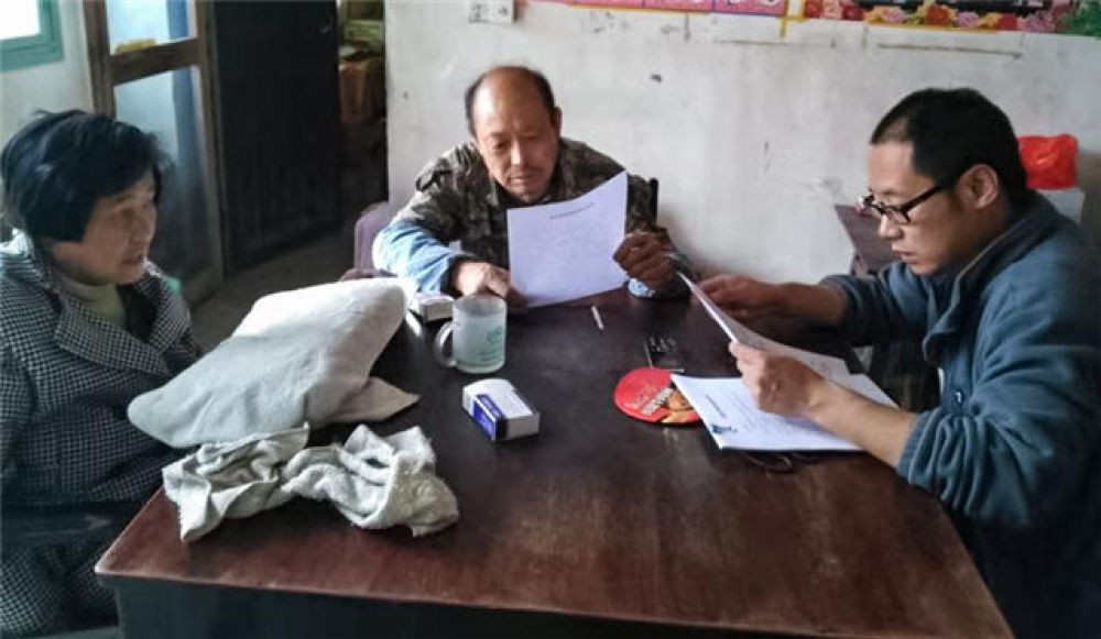 李夏(左)在貧困戶家中走訪(資料照片)。新華社發(fā)