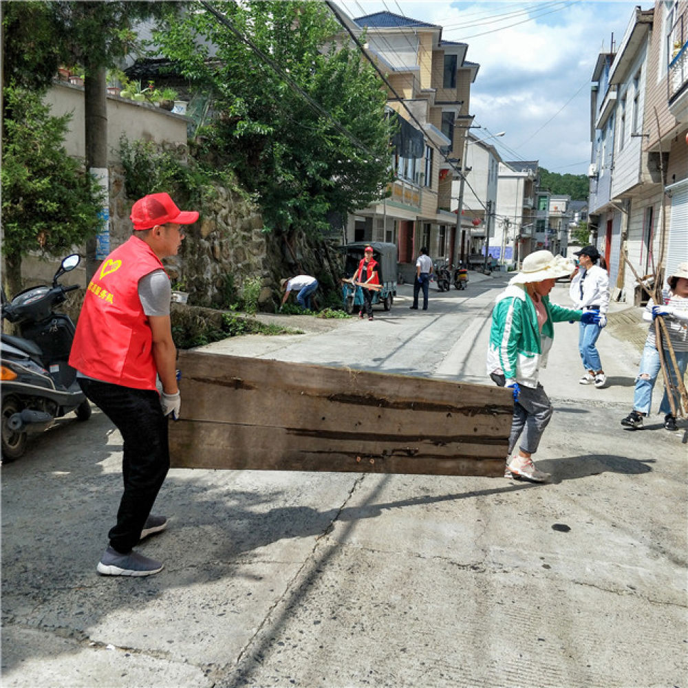 2019年7月,李夏(左)在安徽省績(jī)溪縣荊州鄉(xiāng)方家灣村走訪群眾時(shí),幫助村民整治衛(wèi)生環(huán)境。新華社發(fā)