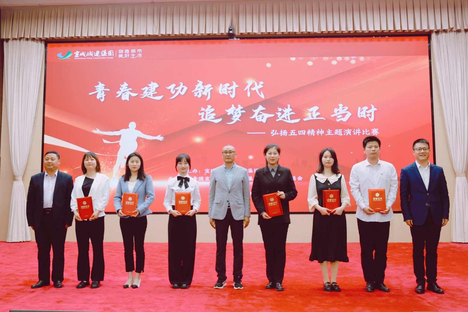 為弘揚(yáng)五四精神,展現(xiàn)青春風(fēng)采,4月27日下午,市城建集團(tuán)舉辦“青春建功新時(shí)代,追夢(mèng)奮進(jìn)正當(dāng)時(shí)”主題演講比賽。集團(tuán)黨委副書(shū)記、總經(jīng)理衛(wèi)民等班子成員蒞臨現(xiàn)場(chǎng)觀摩指導(dǎo),集團(tuán)監(jiān)事會(huì)主席汪國(guó)球擔(dān)任評(píng)委組組長(zhǎng),特別邀請(qǐng)團(tuán)市委市直團(tuán)工委負(fù)責(zé)人宗宇、宣城中學(xué)高級(jí)教師葉婷、市廣電新媒體中心主任余婷婷、宣城日?qǐng)?bào)社編委辦副主任顧維林擔(dān)任評(píng)委,集團(tuán)本部及各子公司共計(jì)12組選手參加比賽。